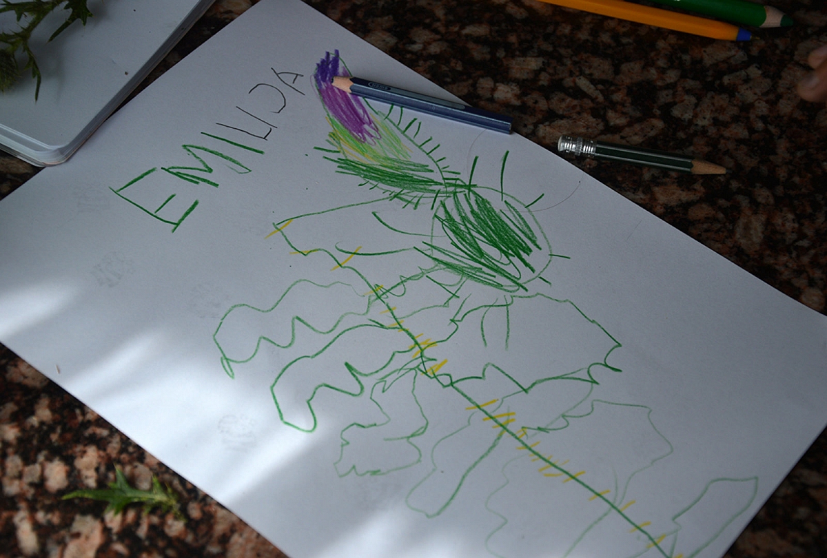 Neaiškinu, kaip piešti. Nei ką piešti. Nei su kuo piešti. Jei paprašo - parodau, jei paklausia - nukreipiu. O šiaip visus darbelius pagiriu, išsiklausinėju kas kur ir kaip. Kolkas nei Emilija, nei Sofija nėra nupiešusi nei vieno negražaus piešinio. Aš įsitikinus, kad tokio dalyko kaip negražus vaiko piešinys net ir nebūna... Na nebent vaikas gimęs su fluxus genais ir daro kažkokias kakofonijas ant popieriaus...